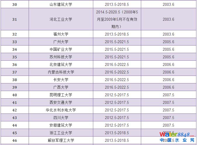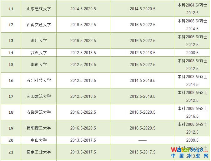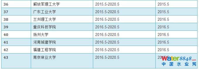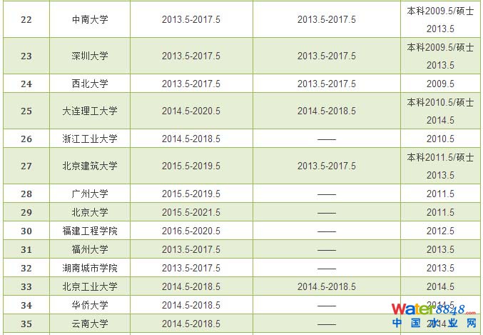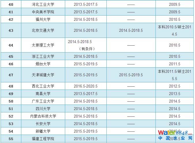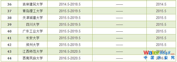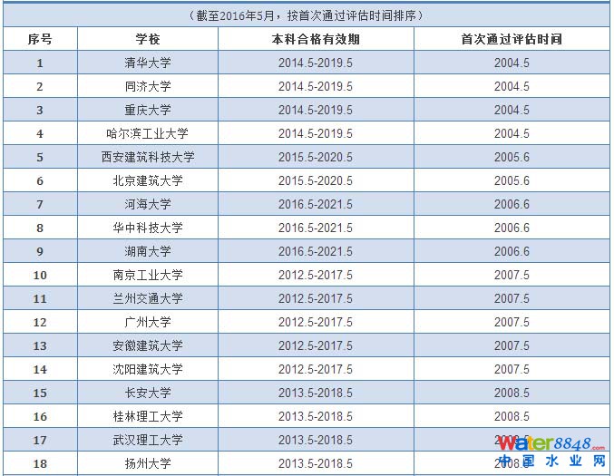 給排水科學與工程專業(yè)評估通過學校和有效期情況統(tǒng)計表
