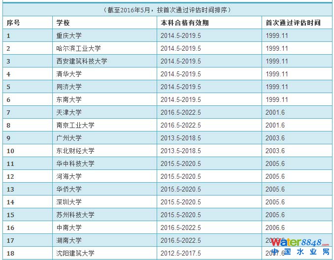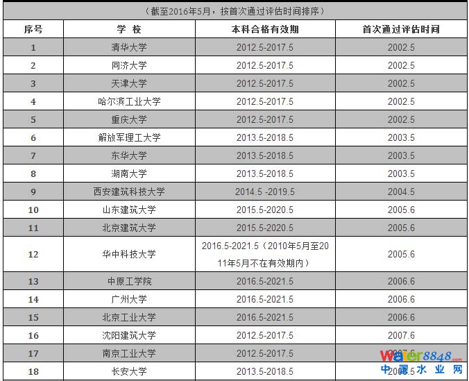 我們整理了2016年專業(yè)評估(認證)結(jié)論及歷年通過學校名單,具體如下: