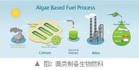藻類,更加確切地說,應(yīng)該是微藻,是一種極小型的水生生物體。這種生物體可以通過光合作用將太陽光轉(zhuǎn)化為能量,儲存在體內(nèi)。有些藻類可以將能量轉(zhuǎn)化為自然油脂。只要在合適的條件下,藻類就可以產(chǎn)生大量的油,這些油經(jīng)過加工可以制備生物燃料(圖2)。