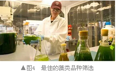 藻類的生物種群非常龐大,有十萬種以上,并且各種藻類的生長環(huán)境都有所不同。有的藻類適合于在清水中生長,有些適合于鹽水,而有些甚至適合于污水。所以,科學(xué)家們在不斷進(jìn)行試驗,以找到適合于不同種類藻類的最佳生長條件,并篩選出最佳的種類并逐步拓展為生產(chǎn)性試驗(圖4)。