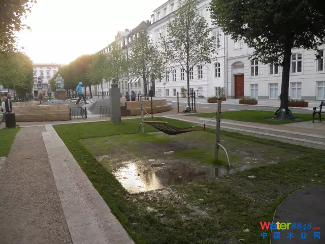 圣·安娜廣場(chǎng)的一處下凹式綠地,下雨時(shí)起到蓄積雨水的作用。董彩霞攝