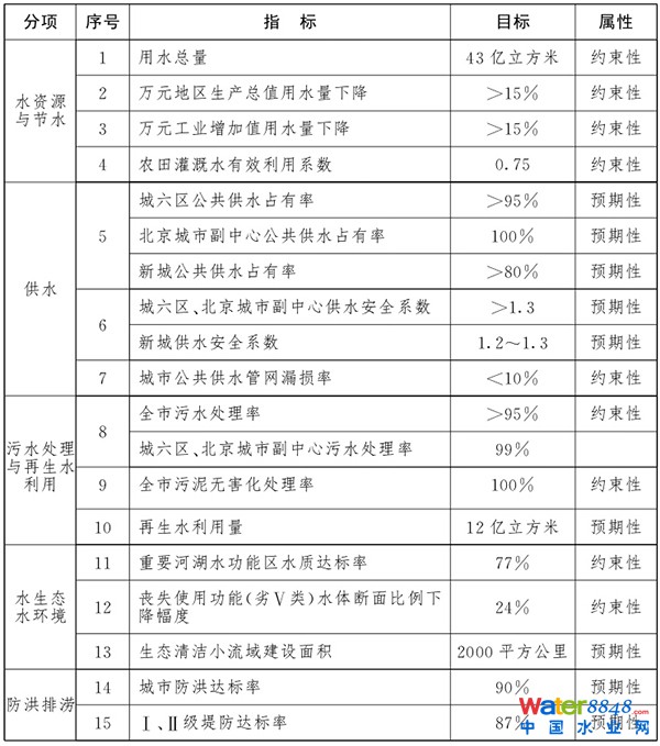 北京市“十三五”時(shí)期水務(wù)發(fā)展主要指標(biāo)