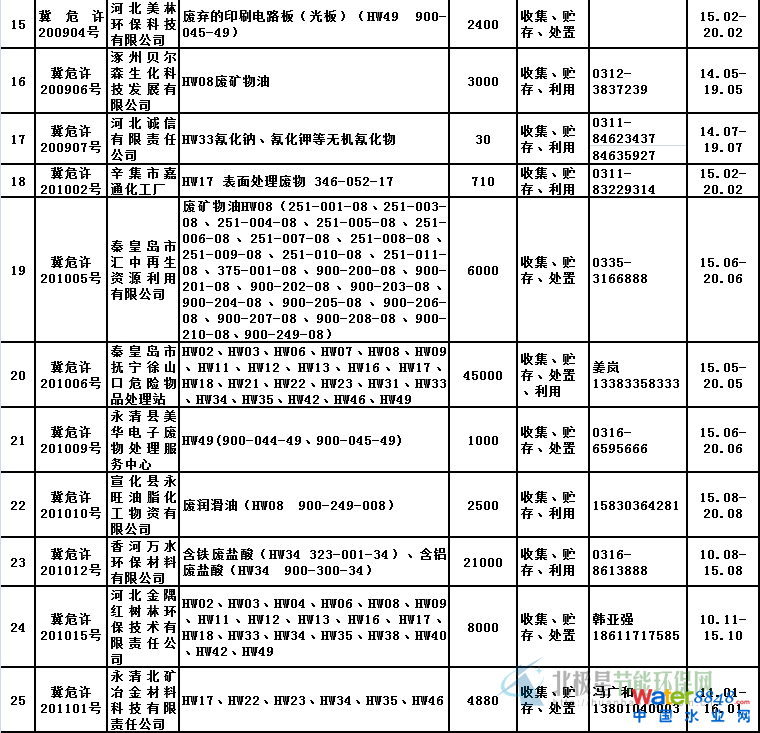 河北省環(huán)保廳發(fā)不了河北省獲得危廢處置資質(zhì)名單