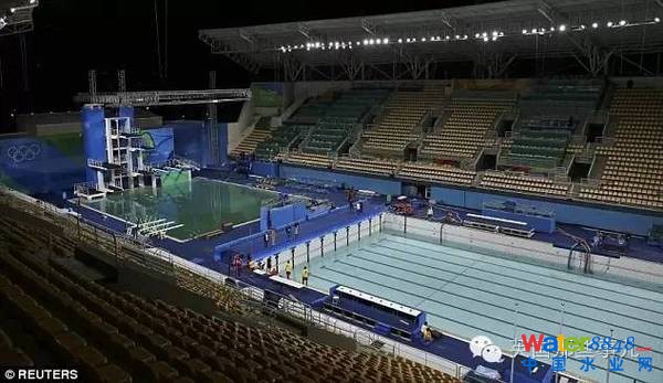 在花樣游泳運動員抱怨泳池太綠,他們比賽時都看不清互相之后,里約官方終于重新放水清理了大池……