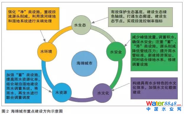 (3) 因地制宜:以城市水文氣象、經(jīng)濟(jì)社會發(fā)展水平為基礎(chǔ),結(jié)合城市本地條件,合理制定發(fā)展目標(biāo),并科學(xué)布局符合城市實(shí)際情況的項(xiàng)目及設(shè)施;根據(jù)城市降雨、土壤、地形地貌等因素和經(jīng)濟(jì)社會發(fā)展條件,綜合考慮水資源、水環(huán)境、水生態(tài)、水安全等方面的現(xiàn)狀問題和建設(shè)需求,因地制宜地采取“滲、滯、蓄、凈、用、排”等措施。