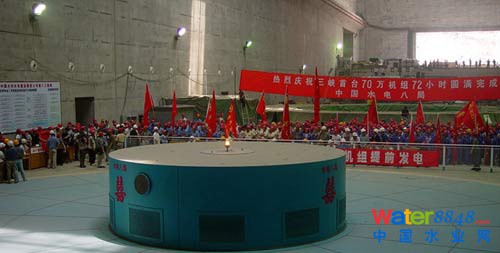 進(jìn)行充水實(shí)驗(yàn)調(diào)試的三峽地下電站32號(hào)機(jī)組