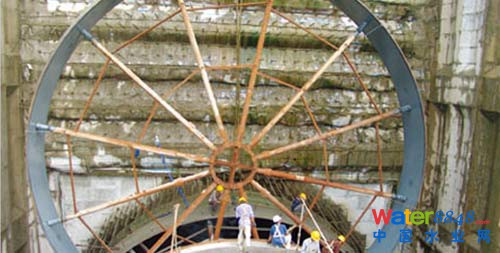 2011年4月26日,工程技術(shù)人員加緊對三峽地下電站30號(hào)機(jī)組進(jìn)行安裝施工。當(dāng)日,三峽地下電站32號(hào)機(jī)組率先啟動(dòng)了充水實(shí)驗(yàn),進(jìn)入投產(chǎn)發(fā)電前的有水調(diào)試階段。按計(jì)劃,若調(diào)試順利,地下電站首臺(tái)機(jī)組將于5月正式投產(chǎn)。三峽地下電站6臺(tái)機(jī)組中有3臺(tái)機(jī)組計(jì)劃于今年汛前陸續(xù)投產(chǎn),其中擬最先發(fā)電的32號(hào)機(jī)組安裝調(diào)試進(jìn)展順利、進(jìn)度最快,另2臺(tái)發(fā)電機(jī)組目前也正按計(jì)劃組裝并聯(lián)機(jī)調(diào)試。