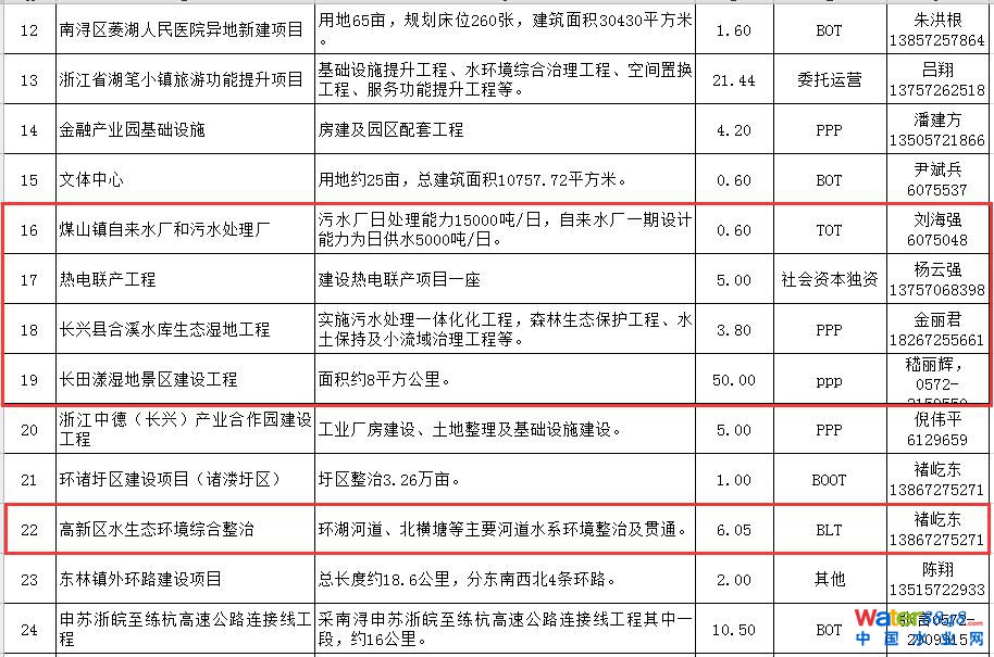 581億 浙江湖州市2016年P(guān)PP項目儲備庫 包括污水處理、生態(tài)修復等環(huán)保項目