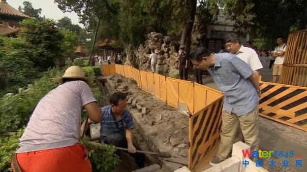 御花園里正在對地下排水系統(tǒng)進行清理。很多進水口都在地下,清理時候發(fā)現(xiàn)全都被淤泥、垃圾、雜草甚至有觀眾扔的一些東西堵住,F(xiàn)在一點一點清理出來以后,重新恢復排水的功能,這樣,御花園的排水就更強大了。