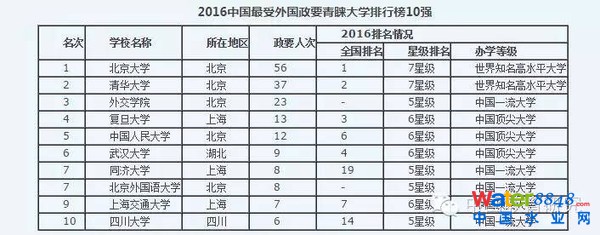 2016中國最受外國政要青睞大學(xué)排行榜10強(qiáng)