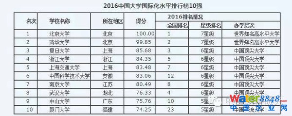 2016中國大學(xué)國際化水平排行榜10強(qiáng)