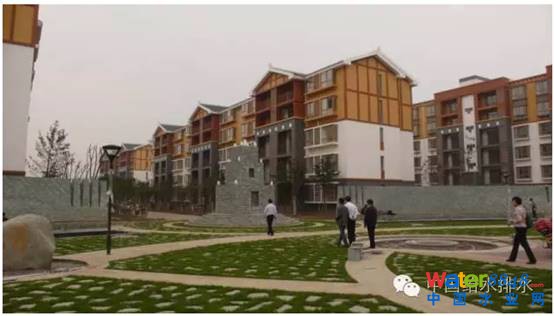 北川新縣城以建設生態(tài)城市為目標,在低影響開發(fā)、可持續(xù)排水系統(tǒng)等方面進行了有效探索,在改善城市水環(huán)境、保護和修復城市水生態(tài)的同時,提高了排水防澇的安全可靠性。以該縣城爾瑪小區(qū)為例。該小區(qū)內部建設眾多雨水自然蓄滯、植草溝、雨水花園等低影響措施,人行步道、停車場、廣場全部采用透水鋪裝,小區(qū)內部雨水管道采用穿孔管;所有公園、綠地均利用低影響開發(fā)措施,雨水自然匯入、滲透、溢流,全部摒棄了傳統(tǒng)的雨水管網(wǎng)系統(tǒng),節(jié)省大量投資。通過以上措施,有效避免了場地內澇。該小區(qū)雨水花園和透水廣場見圖6和圖7。