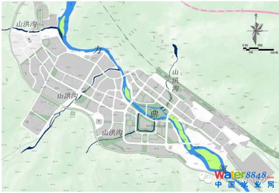 2.2構建城鎮(zhèn)水系,保證內部排水安全