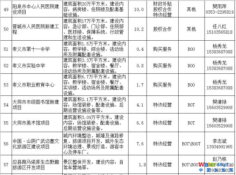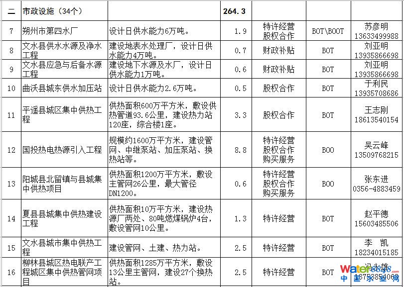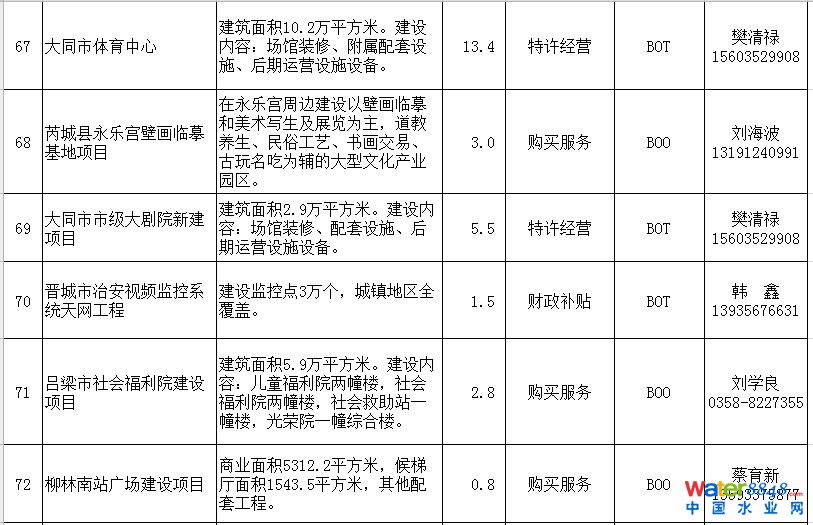 日前,北極星節(jié)能環(huán)保網(wǎng)獲悉,山西省政府和社會合作推介項目表發(fā)布。山西省推介PPP項目共75個,總投資591.4億 ,涉及污水處理、垃圾焚燒等環(huán)保項目。詳情如下: