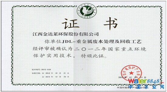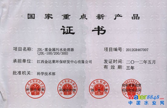 核心提示:核心產(chǎn)品——JDL重金屬污水處理器 可直接資源化回收利用