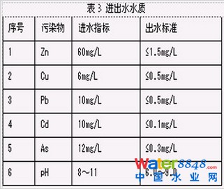 項(xiàng)目2012年6月竣工投產(chǎn),投產(chǎn)運(yùn)行后出水水質(zhì)優(yōu)于《鉛、鋅工業(yè)污染物排放標(biāo)準(zhǔn)》(GB25466-2010)中表2規(guī)定的水污染排放濃度限值。污泥產(chǎn)量非常低,較傳統(tǒng)工藝降低80%。職工三班倒,每班配置職工一名。部分運(yùn)行水質(zhì)數(shù)據(jù)如下:
