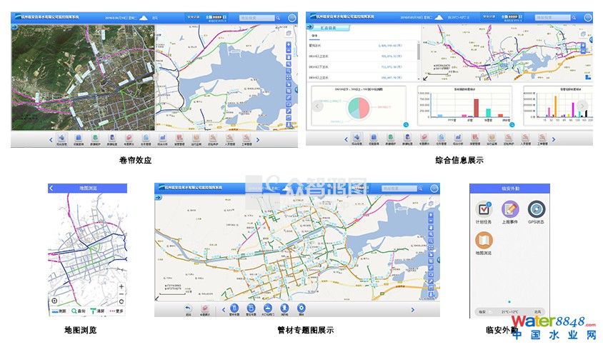 基于GIS臨安市自來水公司監(jiān)控指揮系統(tǒng)集綜合業(yè)務(wù)管理及外勤搶維修功能模塊于一體。將GIS技術(shù)作為工具應(yīng)用至營業(yè)、抄表、報裝、巡檢、檢漏、搶維修等業(yè)務(wù)中,輔助各部分工作與管網(wǎng)數(shù)據(jù)進(jìn)行緊密結(jié)合,從而實現(xiàn)公司的精細(xì)化管理;以GIS管網(wǎng)地圖為載體,實現(xiàn)了各類業(yè)務(wù)流程、分析結(jié)果、運營信息基于地圖的可視化展現(xiàn)。通過建立數(shù)據(jù)信息共享與交換平臺,實現(xiàn)了整個供水企業(yè)信息的有效流轉(zhuǎn)、匯集、共建共享與動態(tài)更新。建設(shè)設(shè)施管理功能,實現(xiàn)了基礎(chǔ)設(shè)施管理、設(shè)備屬性管理、管網(wǎng)數(shù)據(jù)校驗、拓?fù)潢P(guān)系自動維護(hù)、CAD數(shù)據(jù)轉(zhuǎn)入功能。支持地圖定位、數(shù)據(jù)瀏覽、數(shù)據(jù)查詢、爆管分析、量算等功能并采用在線和離線兩種方式加載管網(wǎng)及地形圖數(shù)據(jù),支持計劃性搶修和非計劃行搶修、管件管理等業(yè)務(wù)流程;實現(xiàn)對外勤工作人員的精細(xì)化管理與績效考核,為臨安自來水公司有關(guān)部門從宏觀層面上對整個企業(yè)的運行情況進(jìn)行動態(tài)監(jiān)管與考核,宏觀把握與掌控,提供強(qiáng)有力的技術(shù)支撐。
