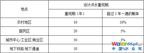 注:1按表中所列重現(xiàn)期設(shè)計暴雨強度公式時,均采用年最大值法;