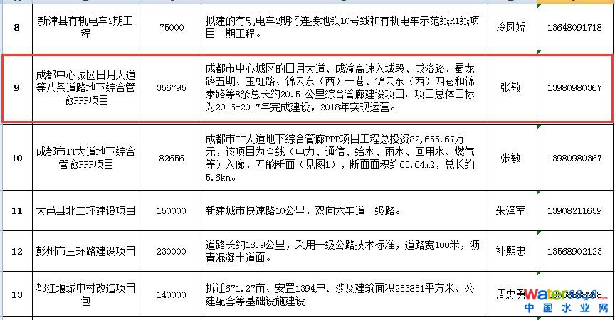 成都市2016年第一批PPP推介項(xiàng)目信息表