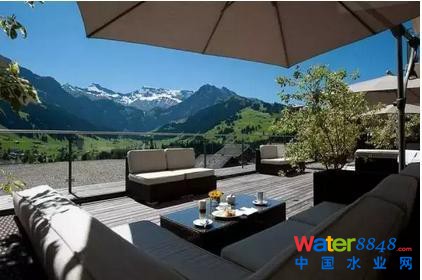 讓人頓時感覺可以從泳池里一路游到積雪蓋頂?shù)陌柋八股健?/p>