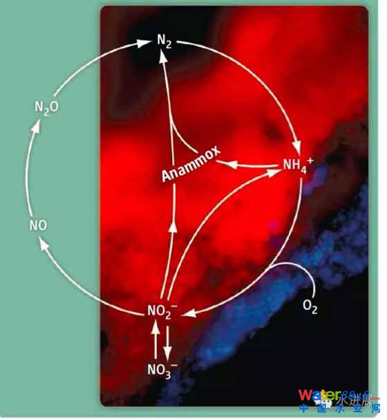厭氧氨氧化(Anammox)是指在厭氧或者缺氧條件下,厭氧氨氧化菌以NO2--N為電子受體,氧化NH3-N為氮?dú)獾纳镞^(guò)程。