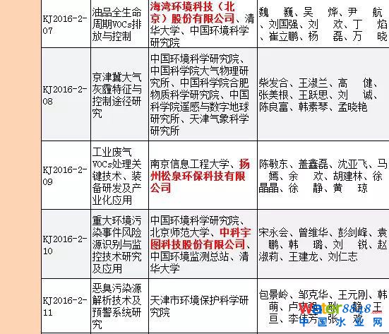 環(huán)保部公布了“2016年度環(huán)境保護(hù)科技獎擬授獎項(xiàng)目公示名單”