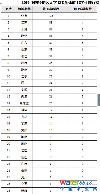 2016中國(guó)各地區(qū)大學(xué)ESI全球前1%學(xué)科排行榜