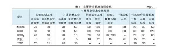 與此同時,石油煉制、石油化學工業(yè)、紡織染整、燒堿和聚氯乙烯以及合成氨工業(yè)近期更新標準(具體見表1),并在2015~2018年期間開始執(zhí)行。COD、BOD等主要指標普遍收緊,比如:紡織染整工業(yè)新標準規(guī)定間接排放限值,即接管標準為COD 200mg/L。1992年標準中“4.1.3排入設置二級污水處理廠的城鎮(zhèn)下水道的廢水,執(zhí)行三級標準”相當于新標準的間接排放要求,三級標準限值為COD 500mg/L。標準提高倒逼企業(yè)增加水處理投入,特別是設備投入。