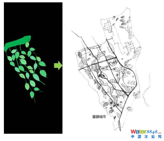 由中國(guó)工程院院士崔愷提出的關(guān)于“蔓藤城市”規(guī)劃策略,以建筑、城市跟環(huán)境、自然相融合的理念解決城市發(fā)展的可持續(xù)性問(wèn)題。“蔓藤城市”設(shè)計(jì)理念,是一種組團(tuán)式的規(guī)劃結(jié)構(gòu),使城市發(fā)展融入風(fēng)景、保護(hù)田園。強(qiáng)調(diào)城市發(fā)展的過(guò)程猶如植物藤蔓生長(zhǎng)一樣的可持續(xù)。它因地制宜,根植于當(dāng)?shù)厣鷳B(tài)環(huán)境、傳承地域文化,探索了一種新型田園城市的規(guī)劃模式。