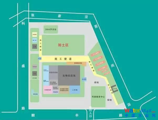 南翔污水處理廠一期工程最大的亮點是“全地埋式”。進水泵房、曝氣沉砂池、應(yīng)急沉淀池、生物反應(yīng)池等污水、污泥處理設(shè)施及相關(guān)配套設(shè)施全部位于地下,一期規(guī)模5萬立方米/天(即每天污水處理量為5萬立方米),后期工程將根據(jù)區(qū)域發(fā)展實際需要以及水量變化情況分期建設(shè),設(shè)計規(guī)模為15萬立方米/天。項目采用的污泥處理工藝為污泥深度脫水,處理后的干化污泥將進入嘉定區(qū)再生能源利用中心與生活垃圾摻燒。項目建成后,地上部分將是開放式的水生態(tài)綠地公園,公園里除了大片綠地,還將建設(shè)水科技館、運動廣場等。