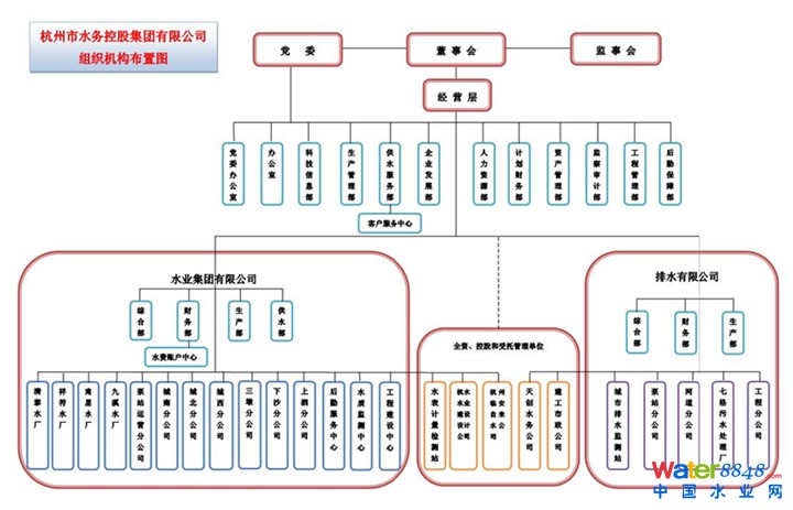 杭州市水務(wù)控股集團有限公司是根據(jù)杭州市政府關(guān)于“整合我市水務(wù)資源,優(yōu)化資源配置,理順管理體制,完善運行機制,打造全市原水、供排水、配水和污水處理一體化運營管理平臺”要求,于2011年11月8日,由杭州市水業(yè)集團有限公司和杭州市排水有限公司聯(lián)合重組而成的,從事水務(wù)投資、建設(shè)、運營的大型國有獨資企業(yè)。