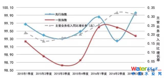 1. A股環(huán)保上市企業(yè)在2016年1-3季度呈現(xiàn)較好的發(fā)展趨勢(shì)。 利用主營(yíng)環(huán)保上市企業(yè)數(shù)據(jù)計(jì)算的2016年一致指數(shù)除第一季度外均大于100,3個(gè)季度 EICI指數(shù)結(jié)果分別為:99.68、102.02、100.83,總體反映出環(huán)保產(chǎn)業(yè)經(jīng)濟(jì)發(fā)展景氣上行。