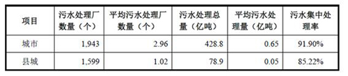 截至2015年末,國內(nèi)城市與縣城污水處理廠數(shù)量及處理率的對比如下: