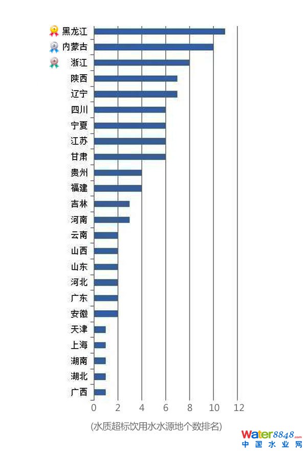 核心提示:12個城市水源水質(zhì)重度超標 你喝的水干凈嗎? 黑龍江、內(nèi)蒙古和浙江三省的超標水源地個數(shù)名列三甲