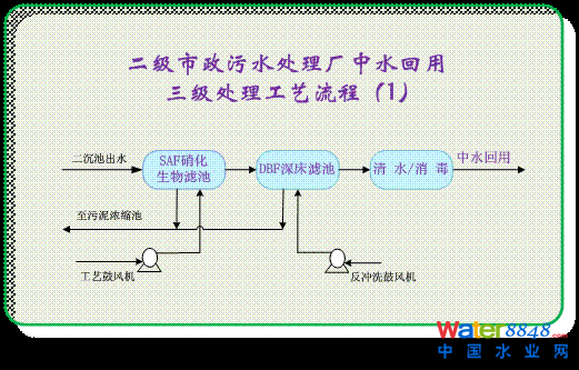 奧迪菲中水回用處理解決方案是針對缺水地區(qū)以市政污水處理廠的一級或二級排放為水源,經(jīng)過好氧生化、深床過濾和消毒使出水達(dá)到各種回用要求的處理工藝。是既能使污水無害化,又能使污水資源化,節(jié)約淡水資源,是我國當(dāng)前和未來相當(dāng)長的時(shí)間內(nèi)重點(diǎn)推廣的處理技術(shù)。目前市場上采用的處理工藝較繁雜,良莠不齊。有的過于簡單,只能去除以懸浮物為主體的污染物,對溶解性的污染物無法去除,有些工藝又過于復(fù)雜,如采用微濾或超濾等膜分離技術(shù),投資及運(yùn)行成本過高,操作程序復(fù)雜,運(yùn)行維護(hù)要求高,雖然出水水質(zhì)很好,但由于設(shè)備的性價(jià)比很低,難伺候,市場推廣遇到瓶頸制約。