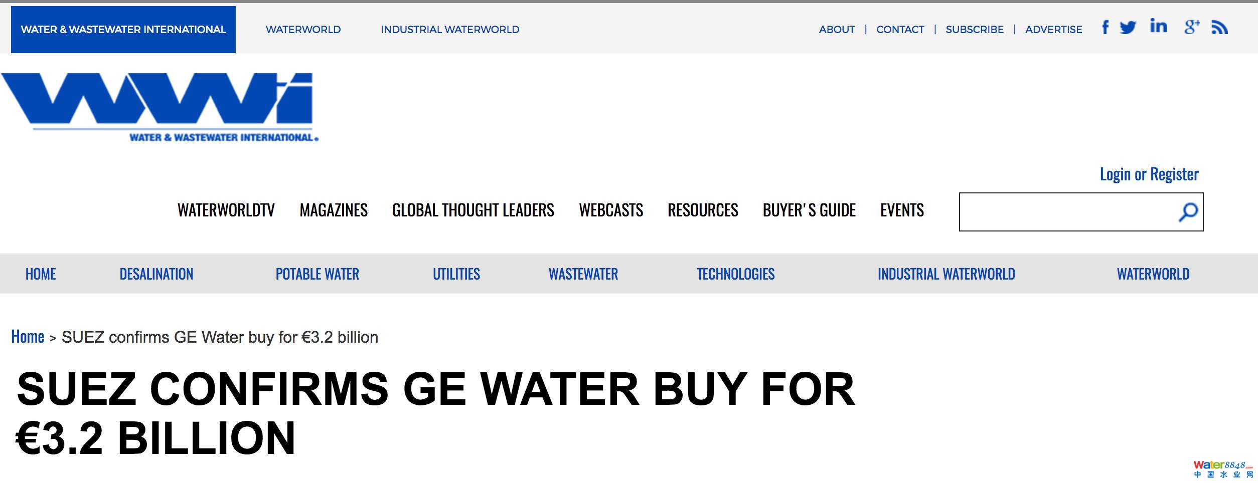 國(guó)際主媒解讀 | 為什么蘇伊士環(huán)境收購(gòu)GE水處理?
