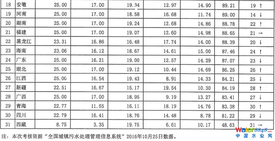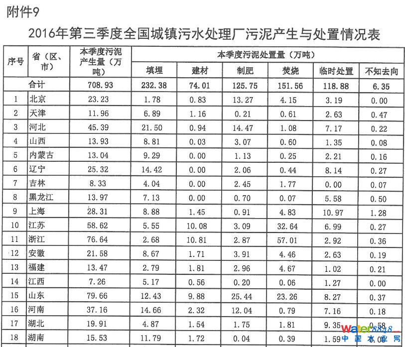 全國(guó)城鎮(zhèn)污水處理設(shè)施2016年第三季度建設(shè)和運(yùn)行情況(附表)