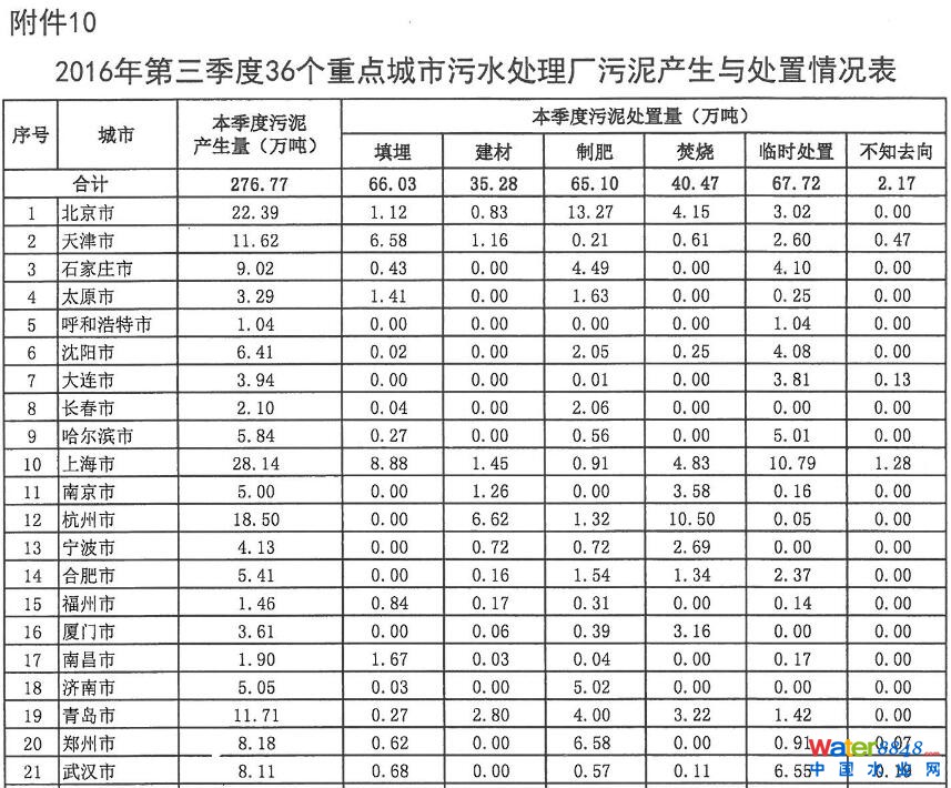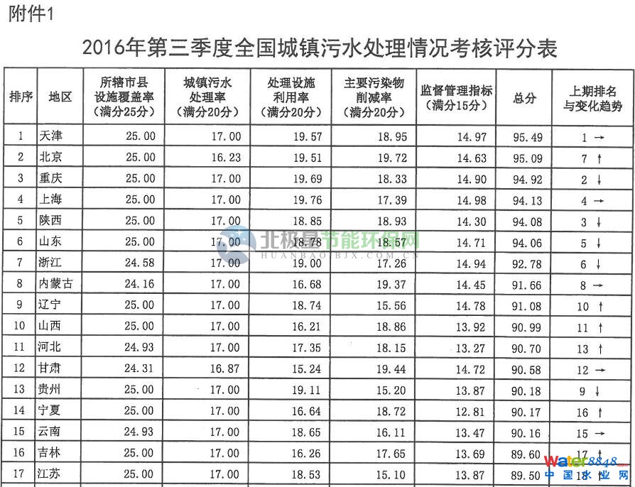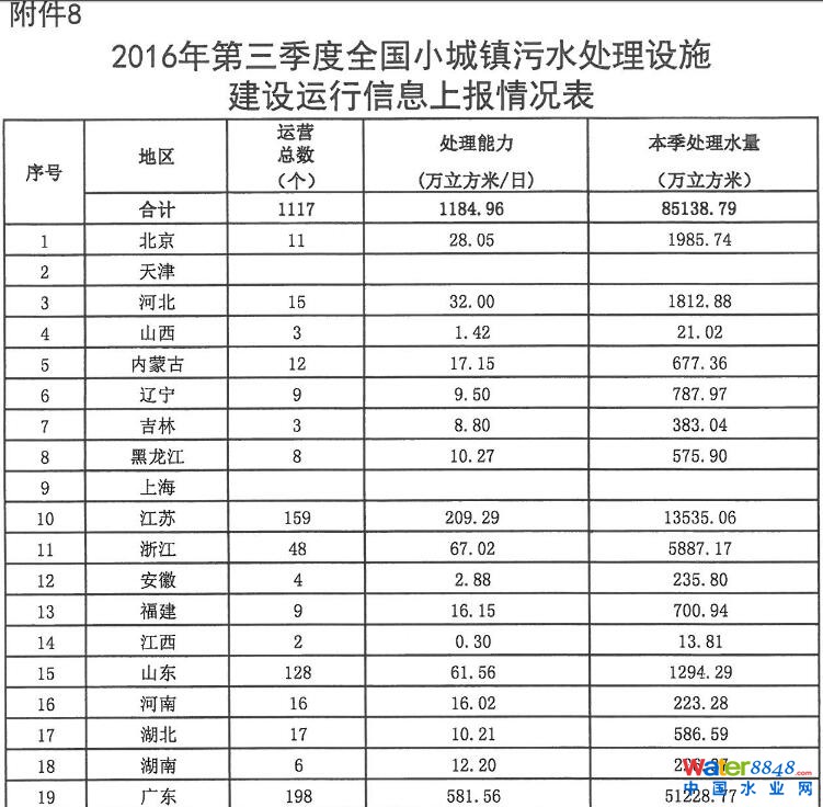 住建部: 全國(guó)城鎮(zhèn)污水處理設(shè)施2016年第三季度建設(shè)和運(yùn)行情況(附表)