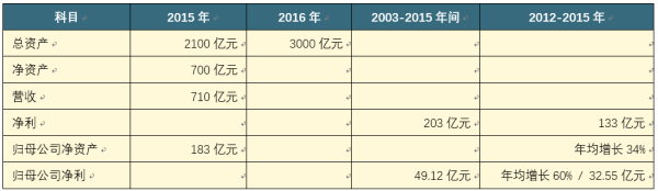 一系列大刀闊斧的改革與發(fā)展舉措,帶來了清華控股的快速增長。截至2015年底,清華控股合并總資產(chǎn)達2100億元,當年總收入710億元,歸屬于母公司的凈資產(chǎn)183億元。同期北大方正集團,總資產(chǎn)為1966億元,但總收入為805億元。截至2016年6月底,清華控股總資產(chǎn)已接近3000億元。在2003-2015年間,清華控股累計實現(xiàn)利潤總額203億元,累計歸屬于母公司的凈利潤49.12億元。其中,2012-2015年累計實現(xiàn)利潤總額133億元,累計歸屬于母公司凈利潤32.55億萬。2012-2015年歸屬于母公司的凈資產(chǎn)年均增長34%,歸屬于母公司的凈利潤年均增長60%。