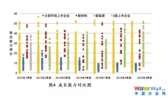 此外,環(huán)保產(chǎn)業(yè)成長(zhǎng)能力繼續(xù)向好。到2016年3季度,環(huán)保產(chǎn)業(yè)整體處于A股上市企業(yè)上游的水平,且鑒于“十三五”期間諸多環(huán)保相關(guān)利好政策的出臺(tái)和實(shí)施,環(huán)保產(chǎn)業(yè)成長(zhǎng)能力預(yù)期將繼續(xù)向好。(圖4)