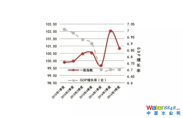 EICI-2016指數(shù)結(jié)果表明,A股環(huán)保上市企業(yè)在2016年1~3季度呈現(xiàn)較好的發(fā)展趨勢(shì)。利用主營(yíng)環(huán)保上市企業(yè)數(shù)據(jù)計(jì)算的2016年一致景氣指數(shù),除第一季度外,均大于100,總體反映出環(huán)保產(chǎn)業(yè)經(jīng)濟(jì)發(fā)展景氣上行。(圖3)