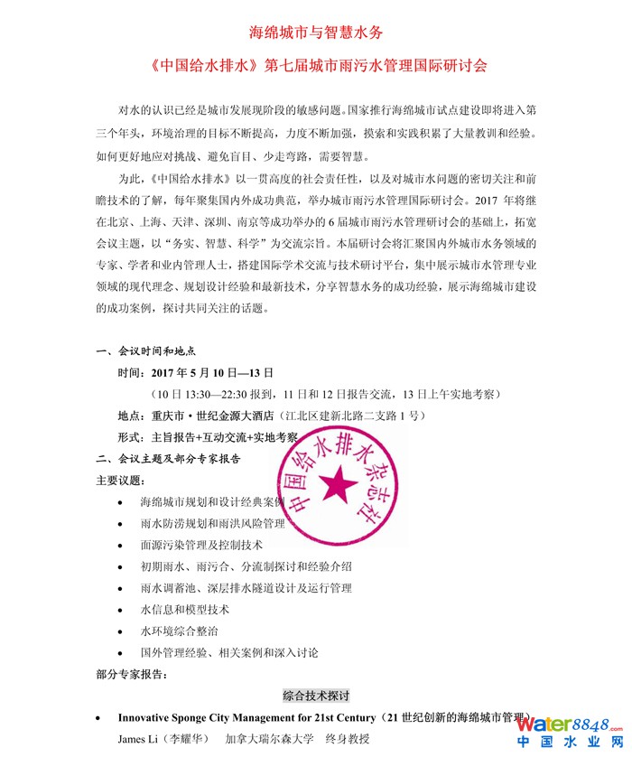 海綿城市與智慧水務(wù) 《中國給水排水》第七屆城市雨污水管理國際研討會