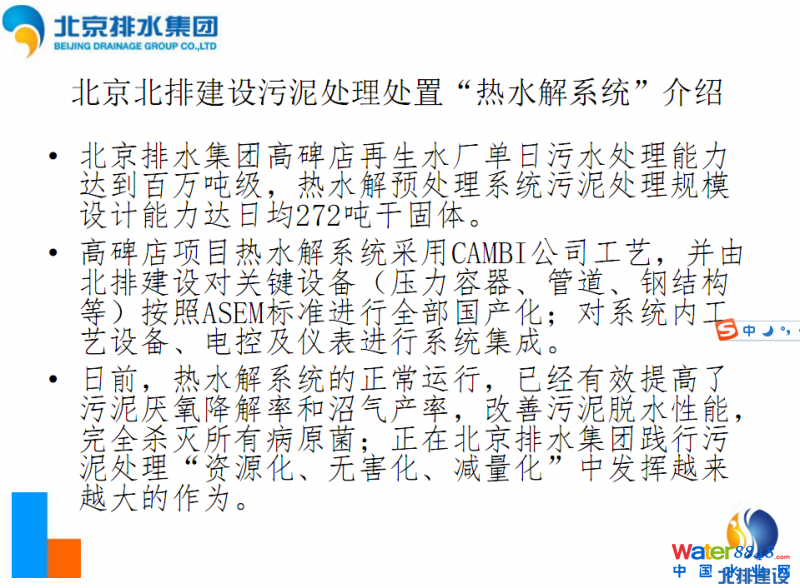 高碑店再生水廠污泥高級(jí)消化工程介紹/北排建設(shè)污泥處理處置介紹、北排建設(shè)污泥處理處置“熱水解系統(tǒng)”介紹