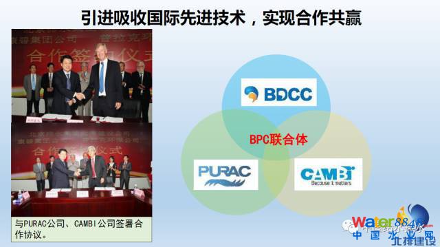 第三部分是我們的建設(shè)心得。我們北排建設(shè)與PURAC(普拉克)公司、CAMBI(康碧)公司簽署合作協(xié)議,成立BPC聯(lián)合體,引進(jìn)國(guó)際先進(jìn)技術(shù)實(shí)現(xiàn)三方合作共贏。同時(shí)在工程建設(shè)中,我們采用EPC工程模式,建立了技術(shù)標(biāo)準(zhǔn),培養(yǎng)了核心團(tuán)隊(duì),獲得了核心競(jìng)爭(zhēng)力,從而確定市場(chǎng)地位,更好的為客戶(hù)提供了全流程的服務(wù)。