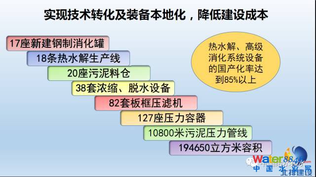 在建設(shè)過(guò)程中,我們建立了熱水解系統(tǒng)的國(guó)內(nèi)設(shè)計(jì)、制造機(jī)安裝的標(biāo)準(zhǔn);建立了高級(jí)厭氧消化設(shè)備采購(gòu),工藝安裝、調(diào)試和試運(yùn)行的標(biāo)準(zhǔn)和流程,從而保證過(guò)硬的工程質(zhì)量。同時(shí),我們實(shí)現(xiàn)了技術(shù)轉(zhuǎn)化及設(shè)備本地化,熱水解和高級(jí)消化系統(tǒng)設(shè)備國(guó)產(chǎn)率達(dá)到85%以上,大大降低了建設(shè)的成本。