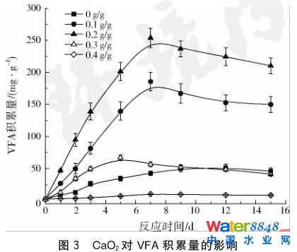 CaO2對(duì)污泥厭氧消化性能的影響  適量的CaO2能夠促進(jìn)污泥的水解和酸化過程,使得VFA大量積累