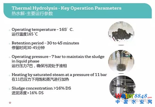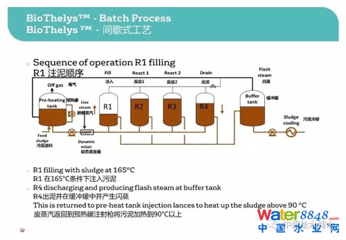 熱水解工藝的運行參數(shù)是運行溫度165度,停留時間30-45分鐘,運行壓力7巴,用11巴壓力的飽和蒸氣對污泥進行加熱,進泥濃度在16%DS以上。經(jīng)過多年的研究和工程經(jīng)驗反饋,目前威立雅的熱水解工藝分為間歇式和連續(xù)式兩種。