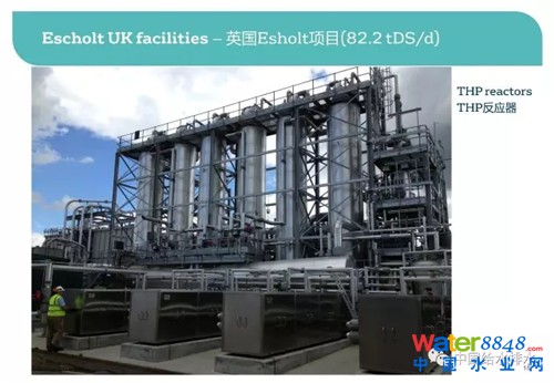 圖示是威立雅在英國Esholt污水處理廠的間歇式熱水解工藝現(xiàn)場照片。該熱水解工藝的污泥日處理量為82.5噸干泥。采用6座熱水解反應(yīng)器,單座容積23立方米。