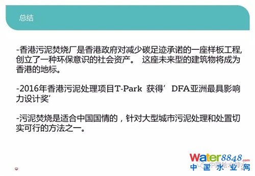 香港污泥焚燒廠是香港政府對減少碳足跡承諾的一座樣板工程,是創(chuàng)立公眾環(huán)保意識的社會資產(chǎn)。這座未來型的建筑物將成為香港的地標。2016年香港T-PARK污泥處理項目獲得香港設(shè)計協(xié)會DFA亞洲最具影響力設(shè)計獎。最后,污泥焚燒是適合中國國情的,針對特大型和大型城市污泥處理處置的切實可行的方法之一。
