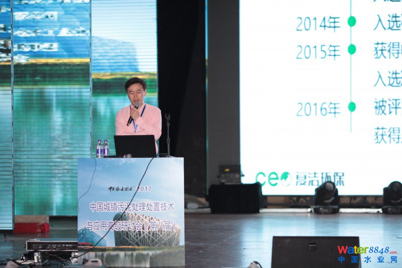 我們知道傳統(tǒng)的污泥脫水和干化往往是通過離心機(jī)、板框或者新型電滲透,這是一個(gè)脫水的過程。如果對(duì)污泥含水率有更低的要求,往往接一個(gè)干化、流化床。我們技術(shù)包含上述脫水和干化的全過程,實(shí)現(xiàn)了一個(gè)污泥脫水跟干化一體化。下面是我們的技術(shù)開發(fā)的一個(gè)大事紀(jì):2011年的時(shí)候,我們?cè)谔K州建立了一個(gè)示范工程,也是我們工業(yè)化的一個(gè)設(shè)備的投產(chǎn)運(yùn)行。列入了國(guó)家污泥處理處置技術(shù)創(chuàng)新聯(lián)盟成員單位。2012年通過報(bào)產(chǎn)業(yè)協(xié)會(huì)和江蘇省住建廳技術(shù)成果鑒定。我們是上海企業(yè),在蘇州有我們的分公司,技術(shù)研發(fā)也是借助蘇州分公司的一個(gè)研發(fā)平臺(tái)。2013年列入住建部十二五國(guó)家水體污染控制與治理科技重大專項(xiàng),包括科技部創(chuàng)新基金,包括引燃行業(yè)的一些推薦的先進(jìn)技術(shù)目錄等。2015年獲得中國(guó)石油和化學(xué)工業(yè)聯(lián)合會(huì)科技進(jìn)步獎(jiǎng),包括環(huán)保部的環(huán)境保護(hù)技術(shù)保護(hù)名錄。去年獲得上海市水務(wù)海洋科技進(jìn)步一等獎(jiǎng)。這個(gè)獎(jiǎng)項(xiàng)還是比較重要的。